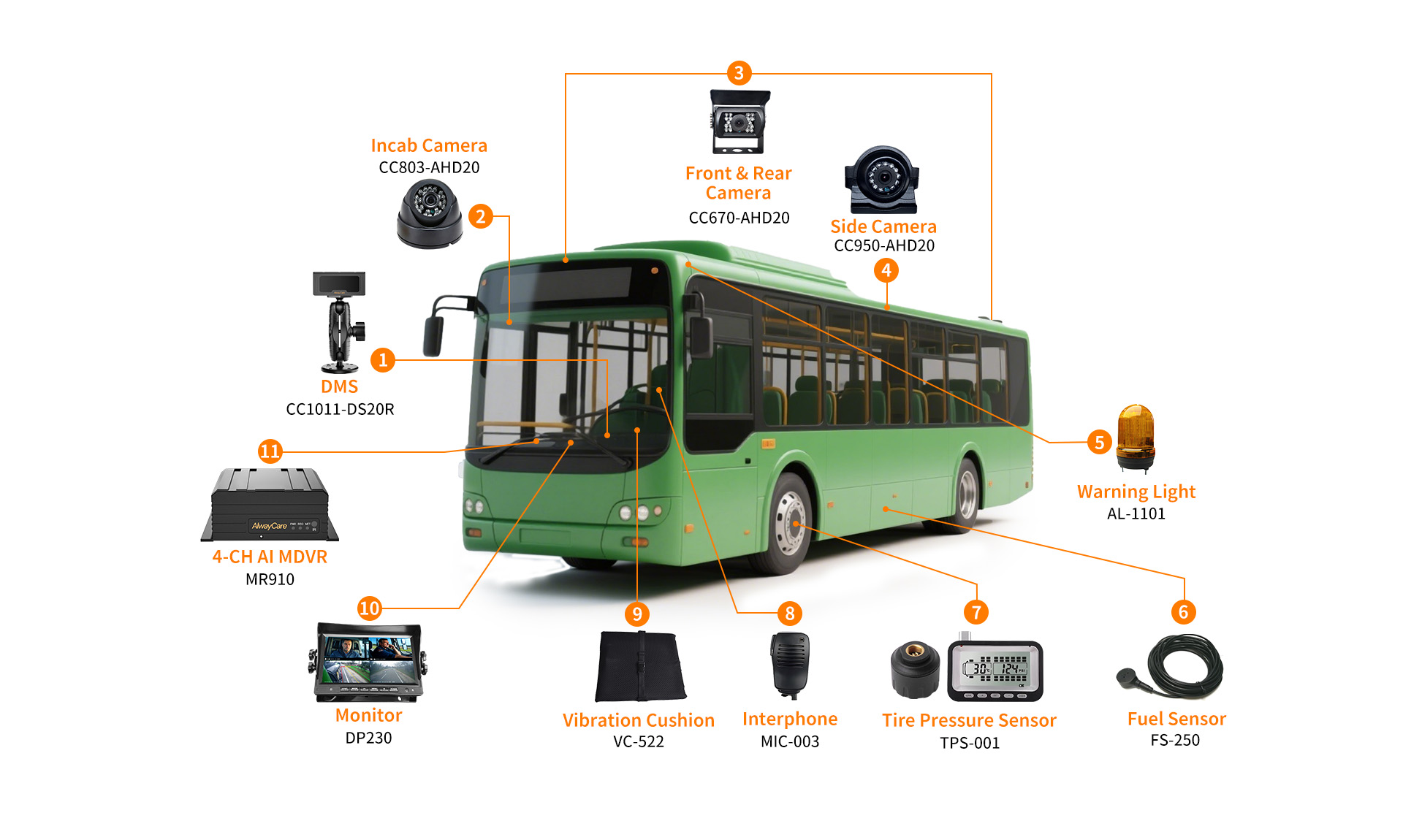 - Integrates ADAS (Advanced Driver Assistance System) and MDVR (In-Vehicle Video Recorder) for real-time monitoring.